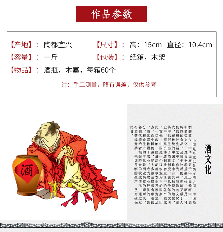 宜兴陶瓷酒瓶1斤装酒坛酒器手工彩绘酒具