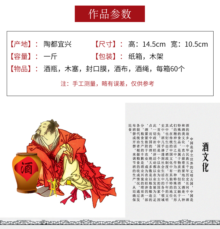 宜兴陶瓷酒瓶1斤装酒坛酒器手工彩绘酒具